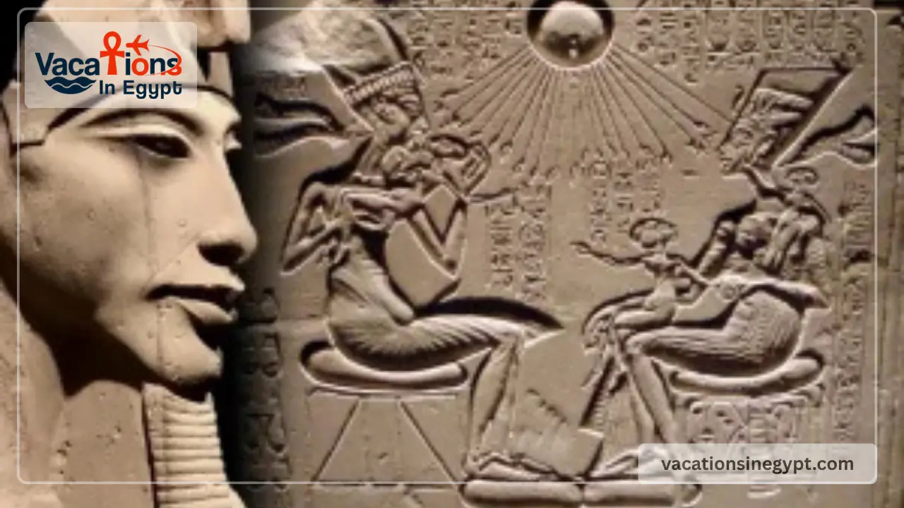 One famous artistic theme shows Akhenaten, Nefertiti, and their daughters beneath the rays of Aten.